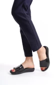 Ana Sayfa Giyim & Aksesuar Kadın Kadın Ayakkabı Terlik Dolgu Topuk Terlik Artı-Artı020-5003 Ortopedik Topuk Dikeni Fonksiyonlu Kadın Siyah Kırışık Rugan Terlik