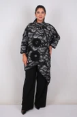 Asimetrik Kesim Çiçek Motifli Oversize Büyük Beden Rüzgarlık İnce Ceket
