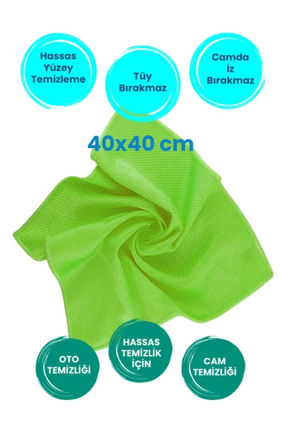 Balkan 6 Adet Yeşil Baklava Desen Mikrofiber Leke Bırakmaz Araç Yıkama Kurulama Oto Cam Temizlik Bezi 40x40