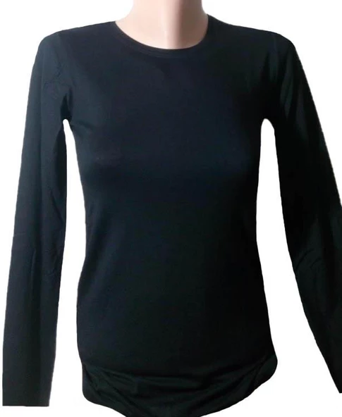 Bayan Uzun Kollu Sıfır Yaka Düz Body Siyah