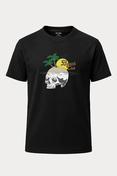 Beach Club Kurukafa Baskılı Loose Fit Bisiklet Yaka Unisex Tişört