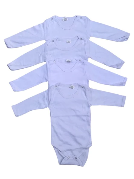 Bebek 4'lü Uzun Kollu Çıtçıtlı %100 Pamuklu Body Zıbın-Beyaz
