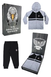 Beşiktaş Orijinal Çocuk Kapüşonlu Eşofman Takımı Hediyelik Ahşap Kutulu