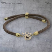 Burca Özel Mevlana Figürlü Kahverengi Örgü İpli 14 Ayar Altın Plakalı Hediye Bileklik-335