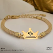 Ana Sayfa Takı & Gözlük & Saat Mücevher ve Değerli Taş Kadın Mücevher Altın Bileklik Burca Özel Taç Figürlü Hasır Kordonlu 14 Ayar Altın Plakalı Hediye Bileklik-464