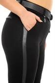 Büyük Beden Kadın Dar Paça Deri Şeritli Beli Lastikli Ekstra Battal Toparlayıcı Pantolon