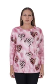 Büyük Beden Leopar Kalp Baskılı Tüğ Detay İnci İşleme Kışlık Bluz