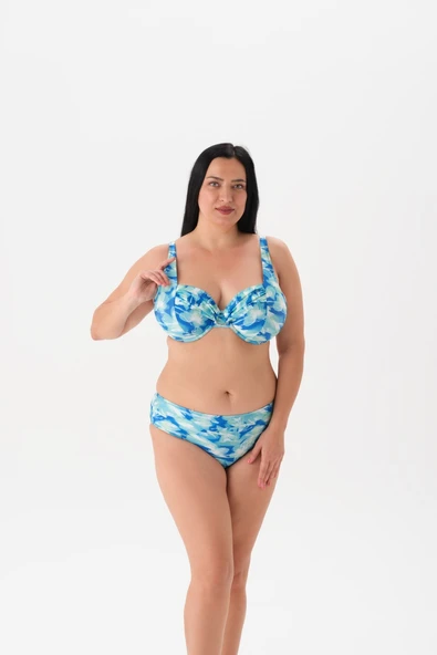 Büyük Beden Mavi Balenli Toparlayıcı Bikini Takım