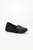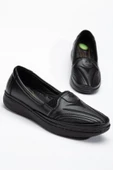 - Büyük Numara Hakiki Deri Kadın Günlük Ortopedik Ayakkabı Siyah Yüzü Nakışlı