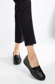 Büyük Numara Hakiki Deri Kadın Günlük Ortopedik Ayakkabı Siyah Yüzü NakışlıRenk