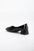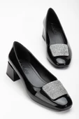 Büyük Numara Rugan Kare Taşlı Siyah Kadın Kısa Topuklu AyakkabıRenk