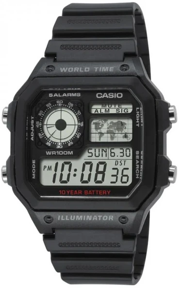 CASIO AE-1200WH-1AVDF SİYAH SİLİKON KORDON DİJİTAL KARE ERKEK KOL SAATİ