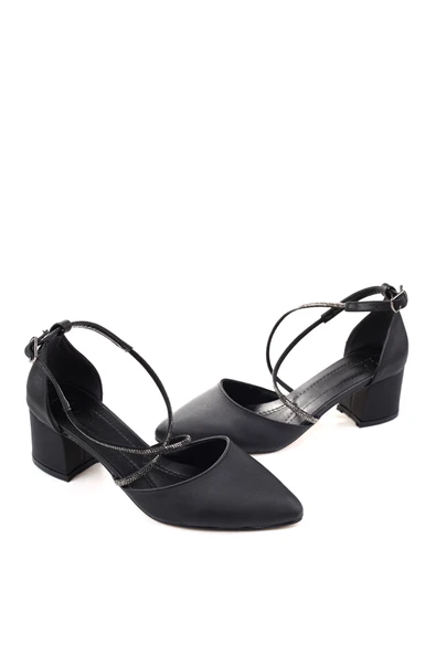 Ceylan 3909 Kadın Taş Detaylı 5,5 Cm Topuklu Saten Ayakkabı