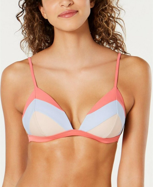 Colorblocked Molded Cup Push-Up Pembe Bikini Üstü