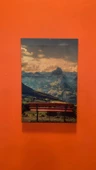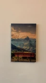 Dağ Ve Bank Manzaralı Natürel Ahşap Çerçeve Ev İşyeri Ofis Duvar Kanvas Tablo MNZ16 - 5