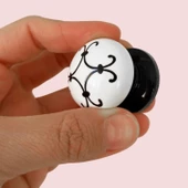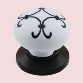 Defne Siyah Çizgili Beyaz Polimer Düğme Kulp Siyah Tablalı Mobilya Mutfak Dolabı Çekmece Kulbu Kulpları