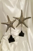 - Dekoratif Traverten Zerafet Stone Deniz Yıldızı Biblo 2 Li Ayaklı