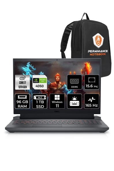 Dell G15 5530 i7 13650HX 96GB 1TB SSD RTX4050/6GB 15.6" FHD W11P G155530010WH & PER4 ÇANTA