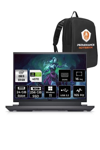 Dell G16 7630 i9 13900HX 24GB 256GB SSD RTX4070/8GB 165HZ 16'' QHD+ W11P G76302401022U & PER4 ÇANTA