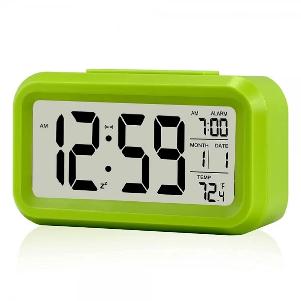 Dijital Termometreli Masa Saati, Lcd Ekran Çalar Saat - YeşilÜründe taksit avantajı var.
