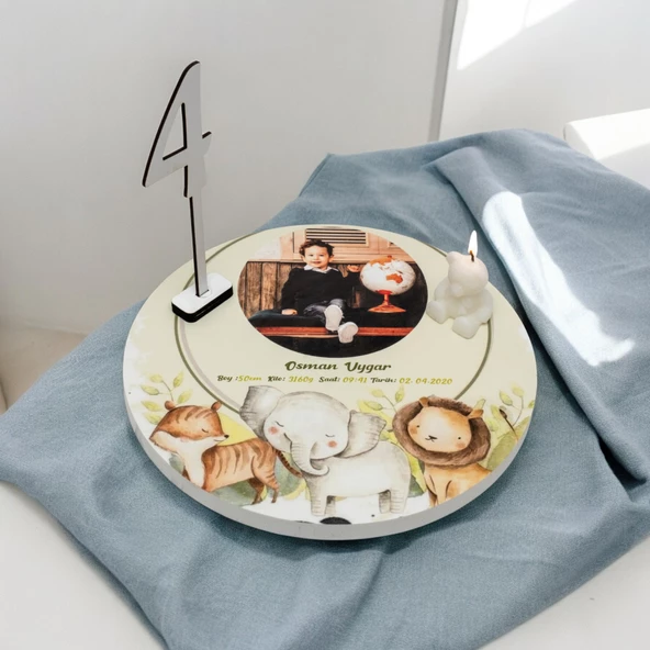 Ana Sayfa Anne & Bebek & Oyuncak Bebek Odası & Mobilya Dekorasyon Ürünleri Sticker doğum panolu ve safari konseptli yaş pasta tablası
