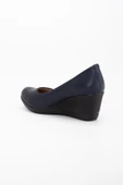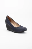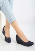 Dolgu Taban Suni Deri Ortopedik Lacivert Siyah Kadın Dolgu Topuklu Ayakkabı