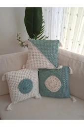 El Örgüsü 3 Adet Kırlent Yastık Kılıfı Koton Pamuk Ip 38*40cm