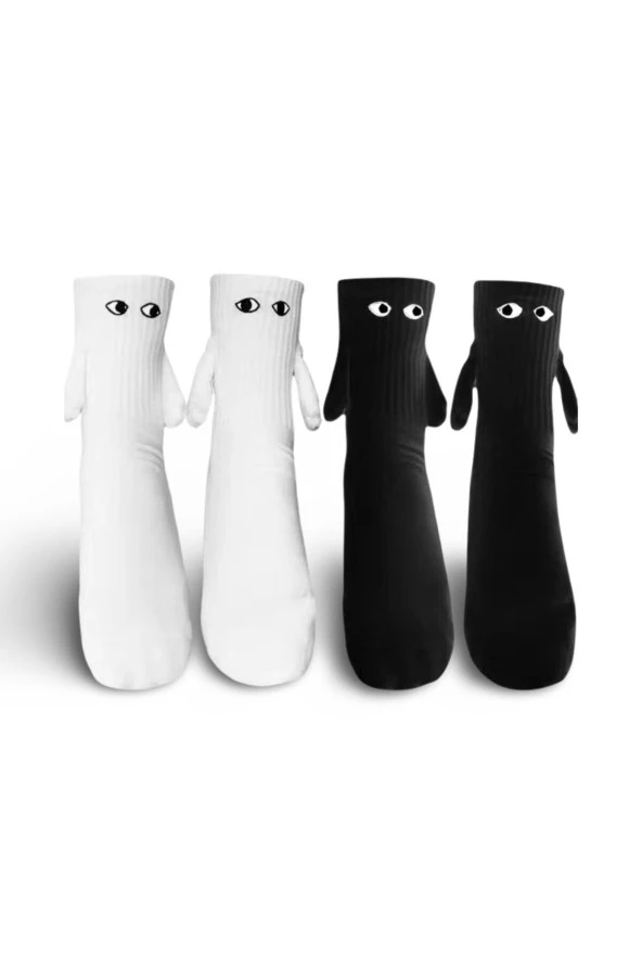Elele Tutuşan Mıknatıslı Çift Çorabı Sevgili Çorabı Siyah ve Beyaz