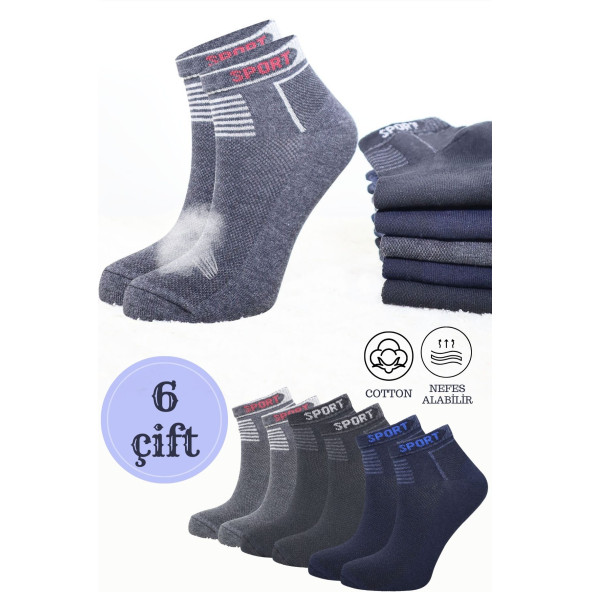 Ana Sayfa Giyim & Aksesuar Erkek İç Giyim Çorap Spor Erkek 6 Çift Pamuklu Basic Derbili Pamuklu Çorap