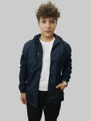 Ana Sayfa Giyim & Aksesuar Erkek Giyim Trençkot & Yağmurluk Yağmurluk Erkek Kapüşonlu File Detaylı Siyah Yağmurluk