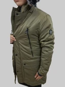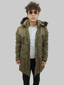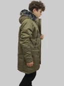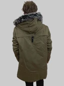 - Erkek Kürklü Çıkma Kapüşonlu İçi Kürklü Kanvas Haki Parka Kaban