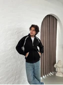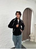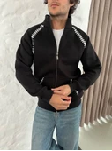 Ana Sayfa Giyim & Aksesuar Erkek Erkek Büyük Beden Eşofman & Sweatshirt Erkek Oversize Dik Yaka Fermuarlı Sweatshirt - Zincir Nakışli Kanguru Cepli - Siyah