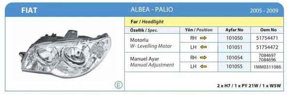 FAR KOMPLE SOL MANUEL FIAT ALBEA PALIO SIENA KROM ÇERÇEVELİ 2005-2007