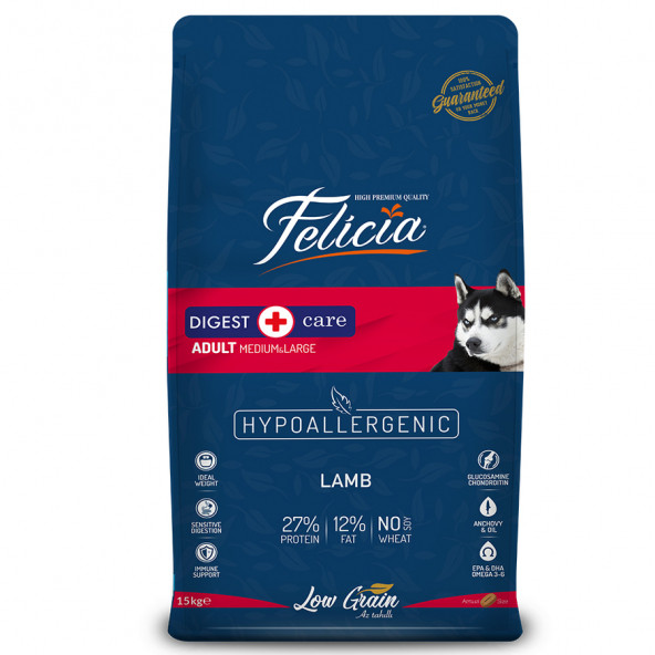 Felicia 15 Kg Yetişkin Kuzulu M Large Az Tahıllı Breed HypoAllergenic Köpek Maması