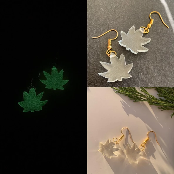 Fosforlu Neon Şeffaf Yeşil Renk Gold Aksesuarlı Küçük Asma Yaprağı Epoksi Küpe El Yapımı Ypr2Üründe taksit avantajı var.