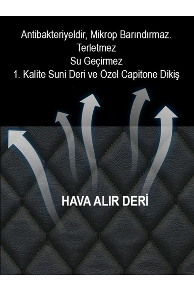 Ftmoto Peugeot 107 2005 ve Sonrası 2li Koltuk Minderi Terletmez Siyah Deri Siyah Dikiş