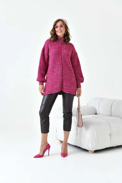 FTZ Women Kadın Degrade Fermuarlı Hırka Fuşya 20871