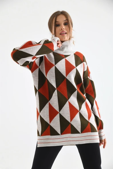 FTZ Women Kadın Degaje Yaka Üçgen Detay Kazak Taş 20054