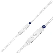 Gümüş Mavi Boncuklu Plaka Çocuk Bileklik