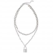 Gümüş Rengi Gerdanlık Kolye Kadınlar İçin 2 Katlı Sevimli Dikdörtgen Zincir Kilit Kolye - 486