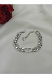 Gümüş Renk Cd Harfli Zincir Bileklik - 389