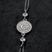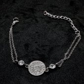 Gümüş Renk Taşlı Yuvarlak Bayrak Figürlü Çift Zincirli Bileklik 909