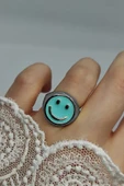 Gümüş Renk Turkuaz Mineli Gülen Surat Yüzük Ayarlanabilir Her Parmağa Olur - 2298