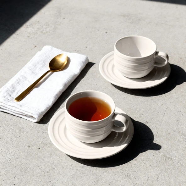 GÜRAL PORSELEN Lizbon 4 Parça 2 Kişilik Çay Fincan Takımı 230 cc