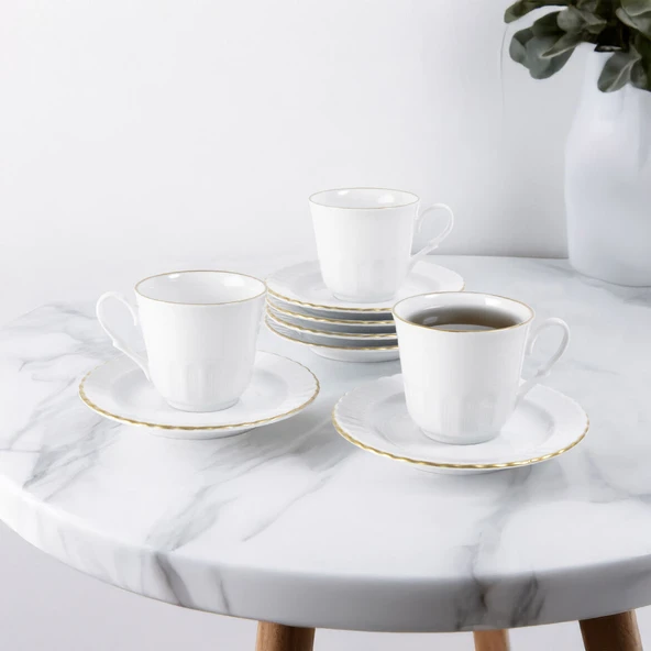 GÜRAL PORSELEN Sedef 2 Parça Tek Kişilik Çay Fincanı Mat Altın File