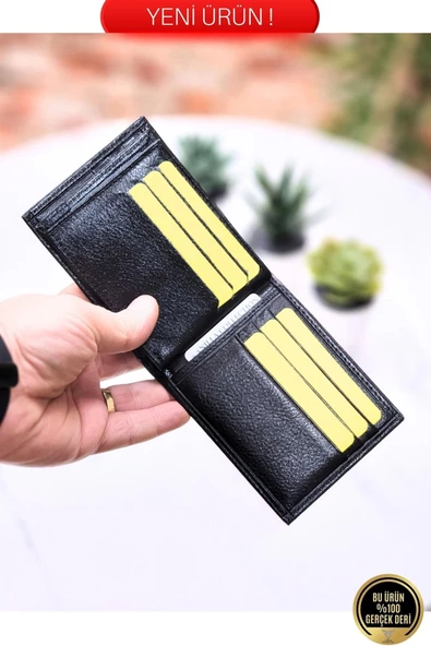 Hakiki Deri Erkek Cüzdan Yatay Model – 14 Kart Bölmeli - İsim Baskılı - Minimalist TasarımÜründe taksit avantajı var.