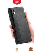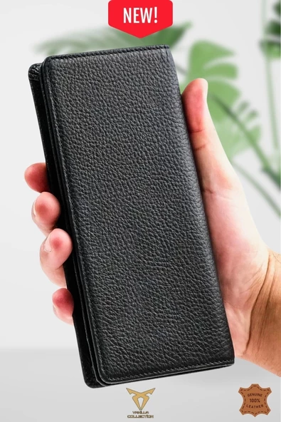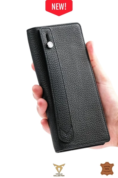 Hakiki Deri Telefon Bölmeli Mıknatıslı Ve Fermuarlı Uzun El Cüzdanı Portföy Kartlık Siyah Floter