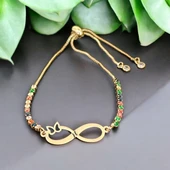 Harfe Özel 14 Ayar Altın Plakalı Sonsuzluk ve Kelebek Motifli Zincirli Renkli Taş Desenli Hediye Bileklik-358