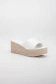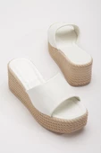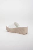 - Hasır ve Düz Kalın Tekbant Beyaz Kadın Dolgu Topuklu Terlik