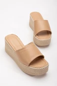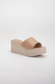 - Hasır ve Düz Kalın Tekbant Ten Kadın Dolgu Topuklu Terlik